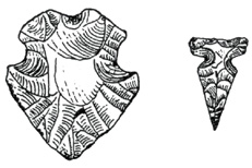 The rock is first exposed to fire, and, after a thorough heating, rapidly cooled off, when it flakes readily into sherds of different sizes under well directed blows at its cleavage. The fragments are assorted according to shape and size best corresponding to the weapons desired; the small ones best fit in shape and thickness, are used for arrowheads; similar sherds, but larger in size, for spear points; the long narrow pieces for borers, and so on.